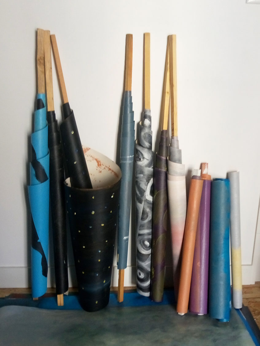 Tous ces états ont été peints sur grands formats pour composer un nuancier des ciels nantais.