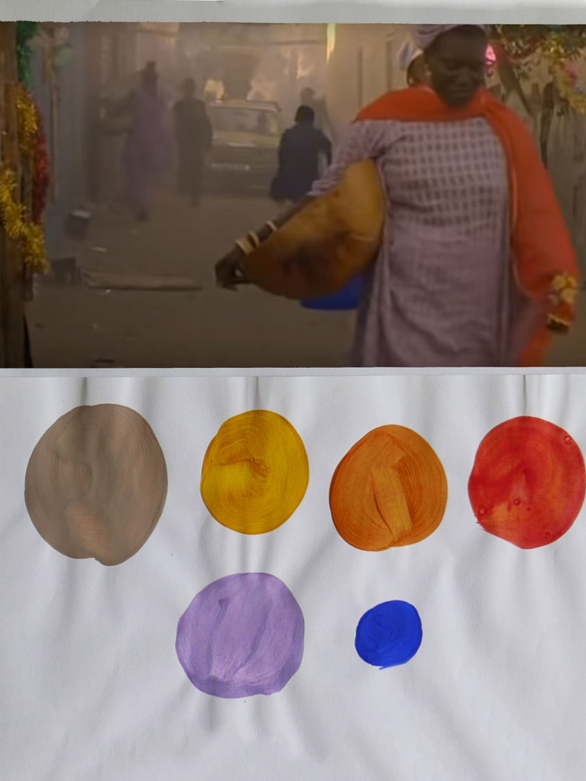 Les matières portuaires réalisées pour le festival sont le croisement des rythmes rencontrés dans les ports de pêche comme dans les grands ports industriels et des couleurs de Dakar. A défaut de pouvoir me rendre sur place, c’est grâce à sa filmographie que j’ai pu extraire une palette de cette ville que je ne connais pas.